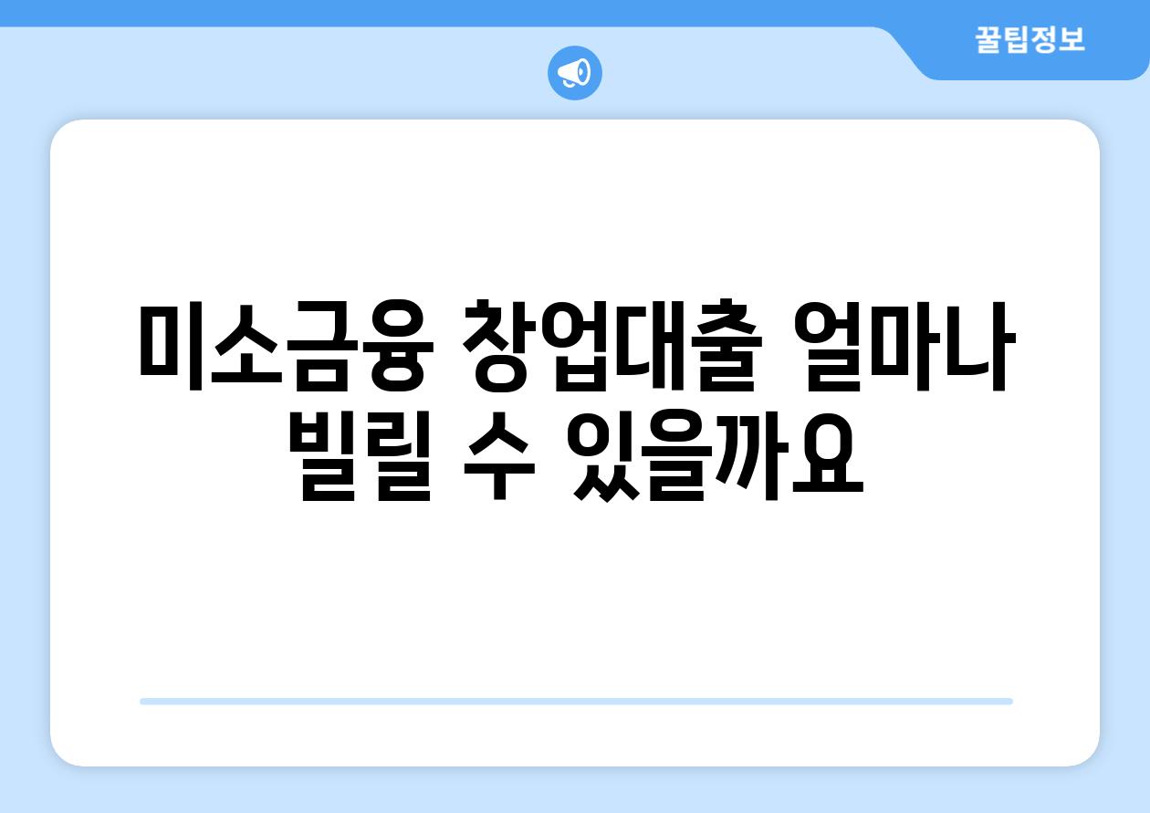 미소금융 창업대출, 얼마나 빌릴 수 있을까요?