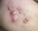 | 위치 | 얼굴, 목, 등, 귀 뒤, 생식기 주변 등 피지샘 밀집 부위 | 엉덩이, 허벅지 안쪽, 겨드랑이 등 마찰 많은 부위 |